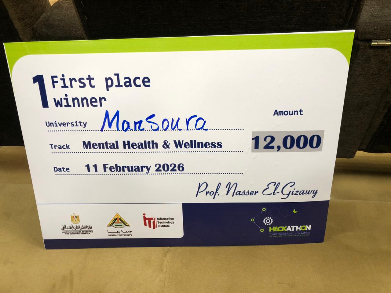 بخالص التهنئة إلى طلاب مشروع "رفيق" Rafiq من كلية الحاسبات والمعلومات وذلك لفوزه بالمركز الأول في هاكثون بنها للرعاية الصحية الذكية Healthcare Hackathon 2026- تراك الصحة النفسية والعافية Mental Health & Wellness.